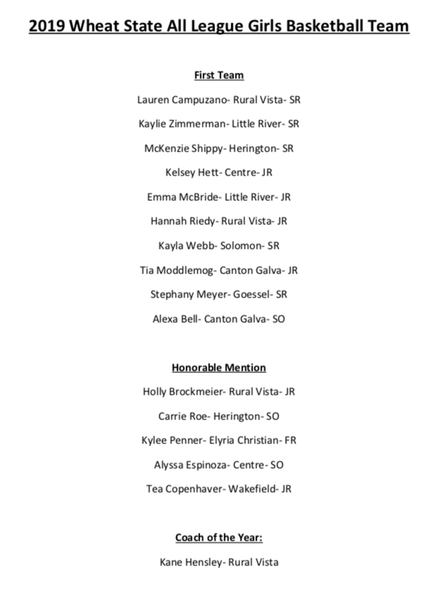Girls WSL All-League Basketball Team